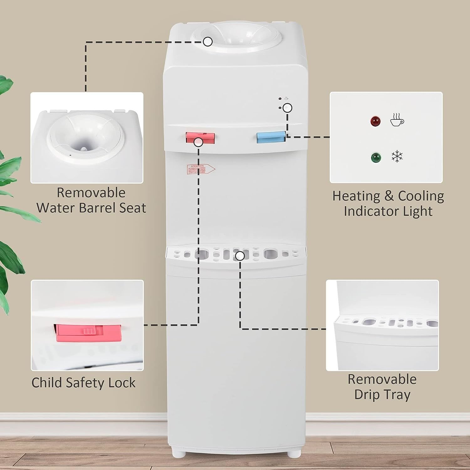 5.Easy to Clean & Low Noise: This water dispenser operates quietly, making it ideal for homes or offices where noise needs to be kept low. Plus, the dispenser is easy to clean, and the removable drip tray and bucket holder make maintenance a breeze and help keep the dispenser looking and functioning at its best.