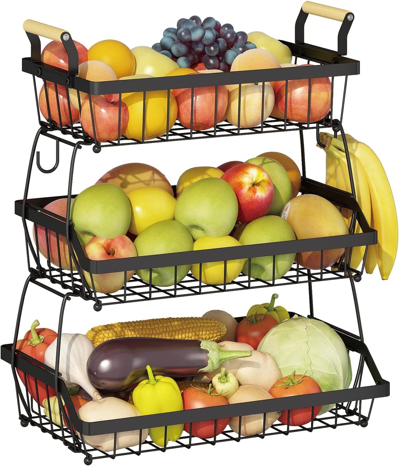 3 Tier Fruit Basket Bowl Farmhouse with Side hooks for Kitchen Countertop 3 Tier Fruit Basket Bowl Farmhouse with Side hooks for Kitchen Countertop 3 Tier Fruit Basket Bowl Farmhouse with Side hooks for Kitchen Countertop