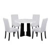 [5 PIECE ROUND TABLE SET] This dining set includes 1 dining table and 4 upholstered chairs that easily seat up to 4 people, perfect for dinner with friends or a casual breakfast. The two color styles present slightly different atmospheres for different preferences!