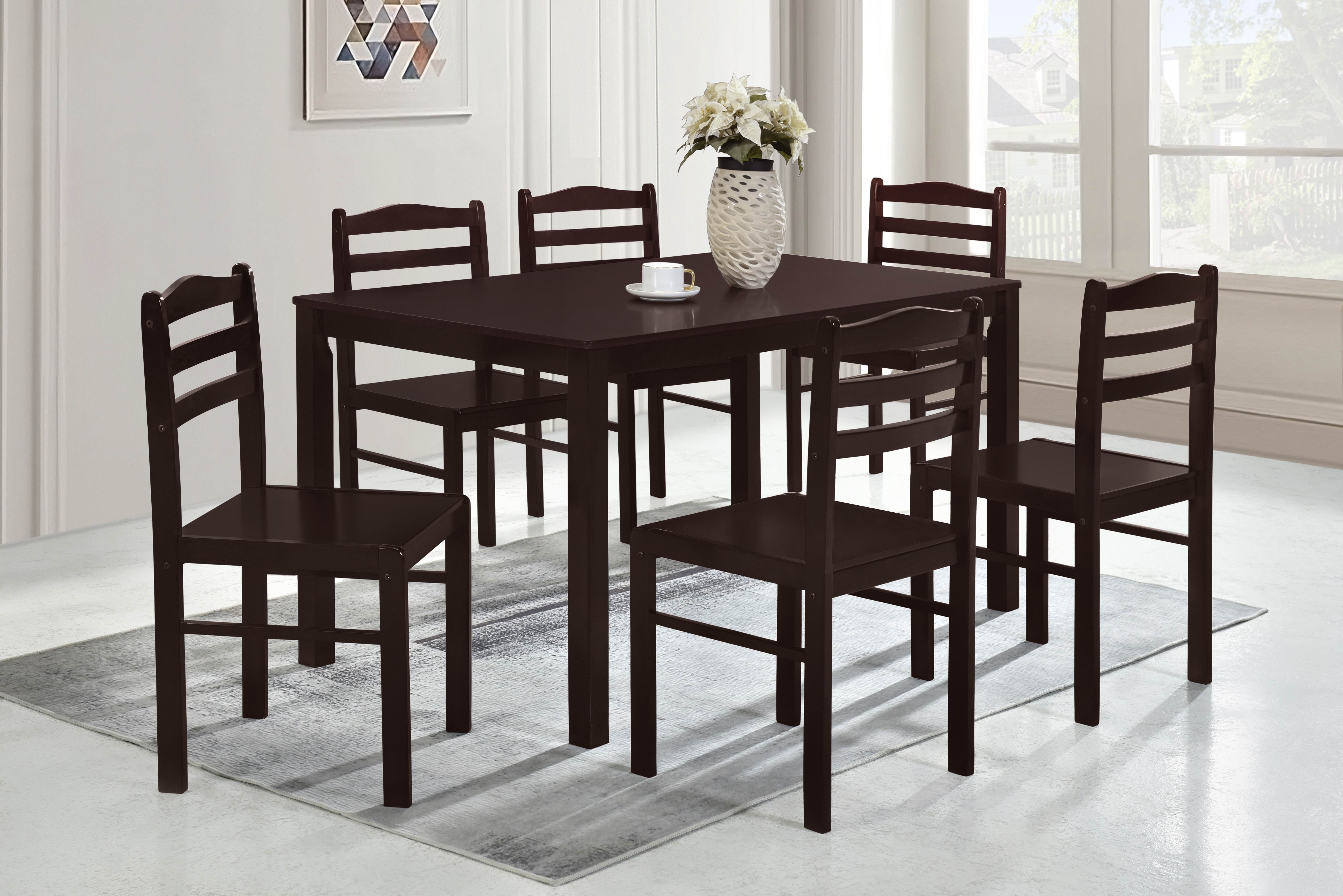 7pc Dining Set Brown Finish Dining Table and 6 Chairs, MDF and Solid Wood, Dining Kitchen Set Furniture
