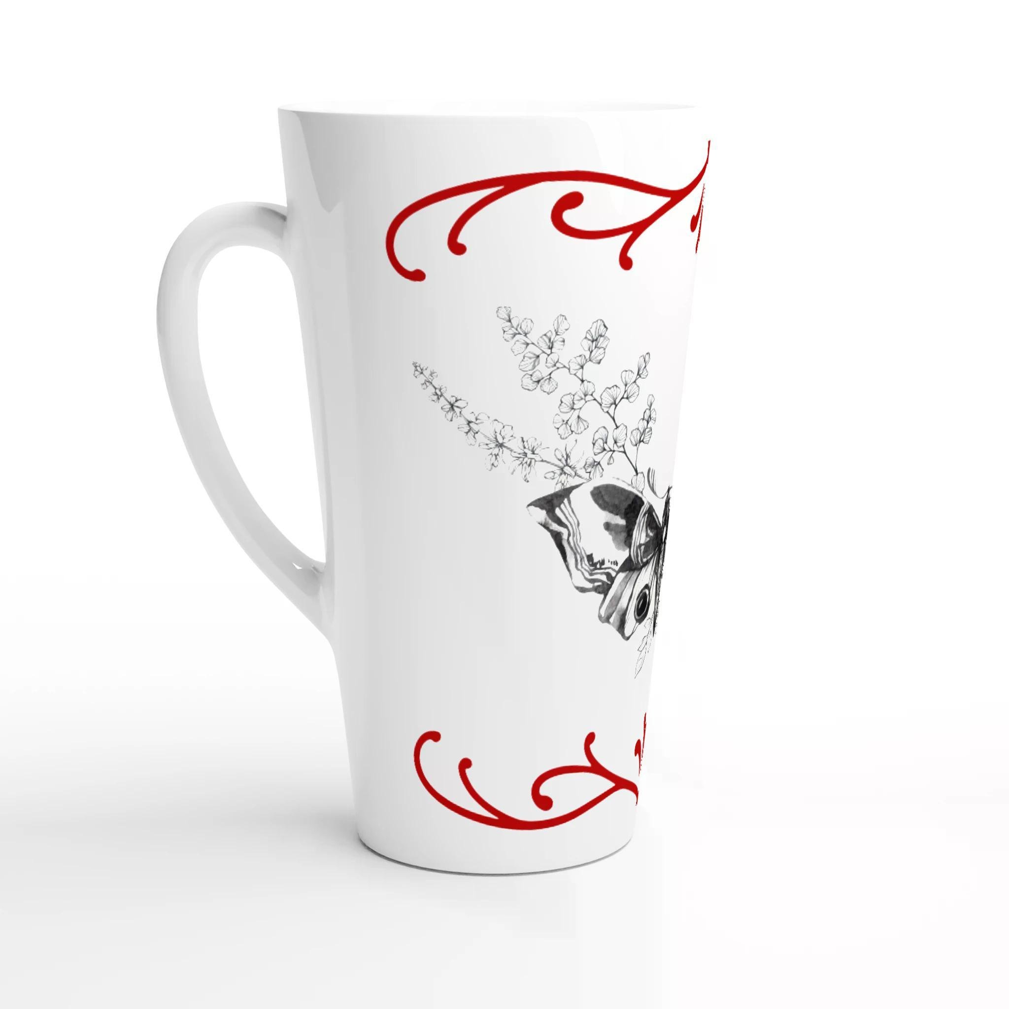 Embrace the beauty of nature with the Ceramic coffee mugs Moth and Flora This 17oz ceramic latte mug features a captivating black and white moth and floral design, expertly crafted by HadiArts. The intricate details and delicate lines, inspired by botanical illustrations, add a touch of elegance and whimsy to your daily routine.