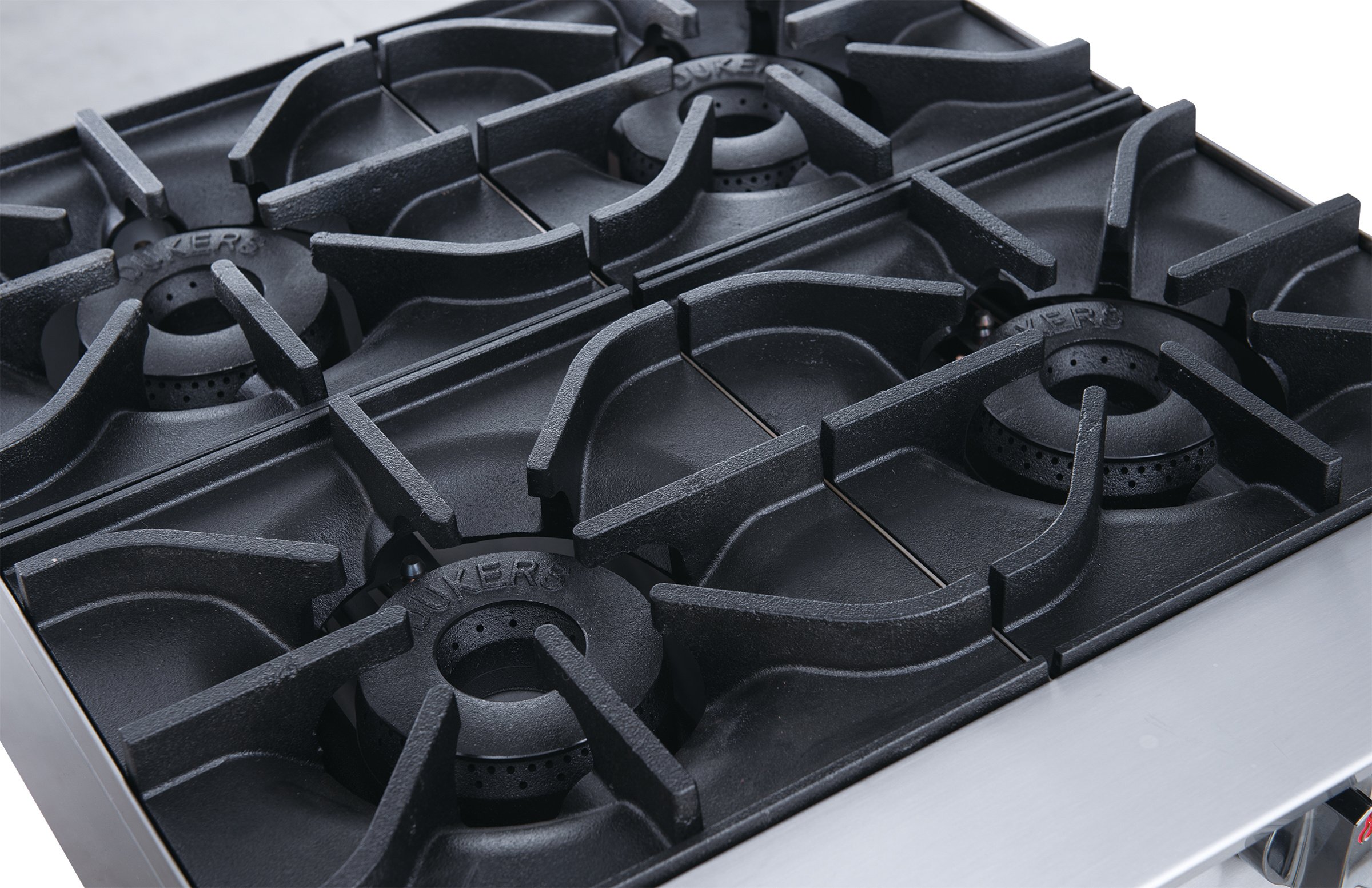 Constructed entirely from stainless steel, each burner of the DukersHot Plates delivers a powerful capacity of 28,000 BTU. Its modern designand sleek appearance make it a standout addition to any kitchen.Engineered with heavy-duty stainless steel and cast iron burners andgrates, it is built to withstand the rigors of even the most demandingcommercial kitchen environments