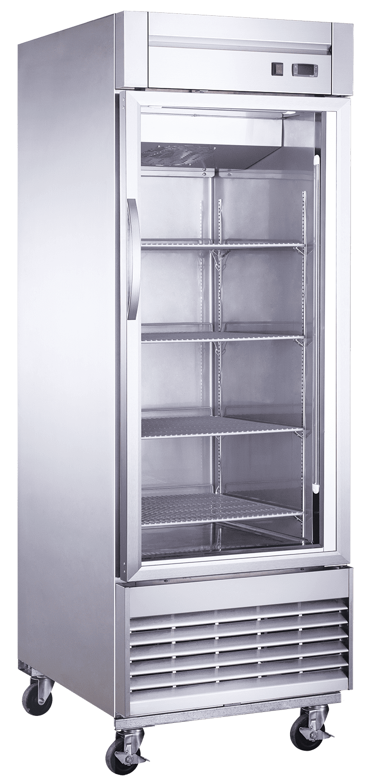 Home > Dukers Commercial Single Glass Door Upright Bottom Mounted Reach-in Freezer in Stainless Steel