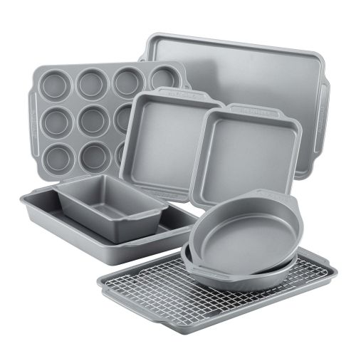 Farberware 10-Piece Nonstick Bakeware Set with Cooling Rack, Grey Farberware 10-Piece Nonstick Bakeware Set with Cooling Rack, Grey Farberware 10-Piece Nonstick Bakeware Set with Cooling Rack, Grey