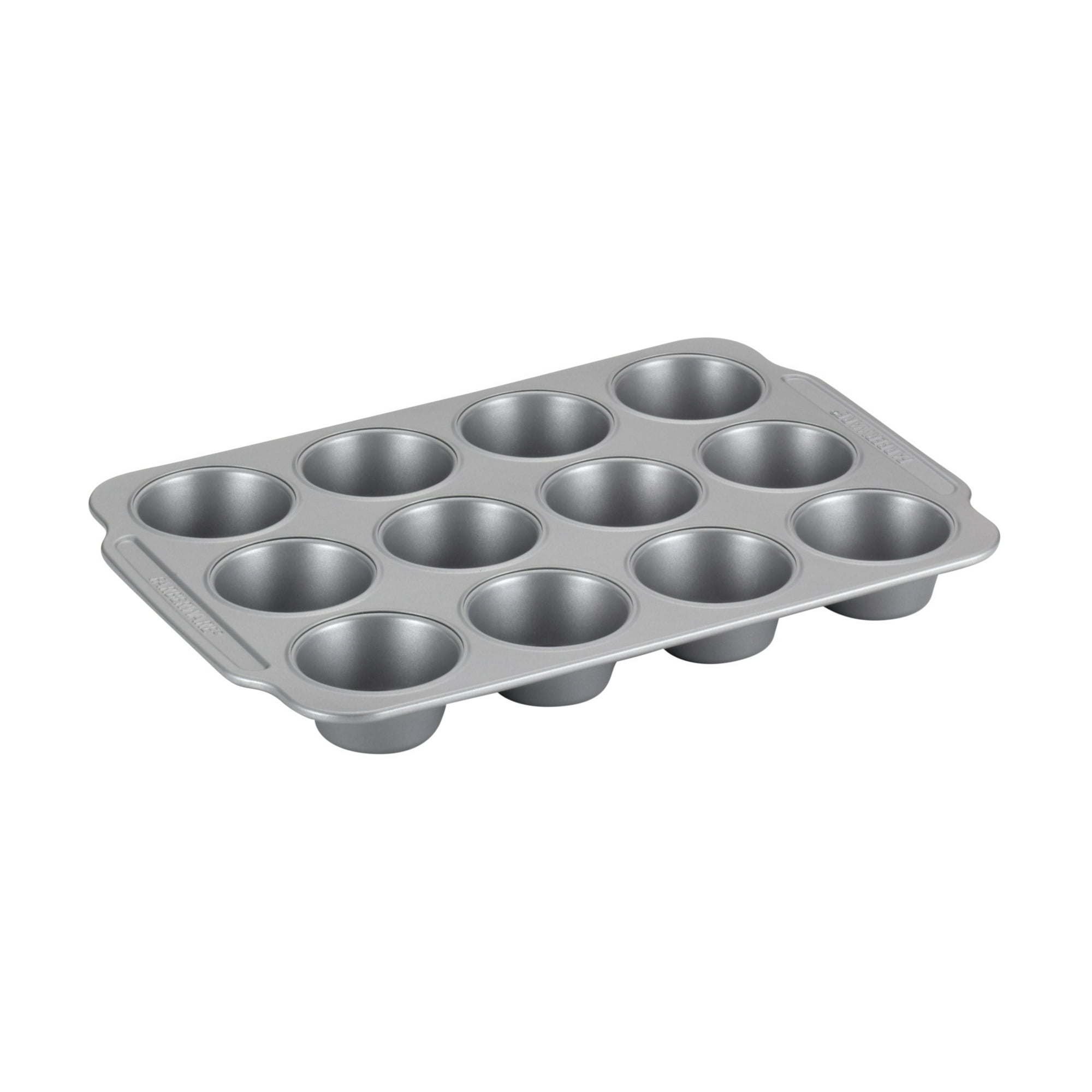 BAKEWARE SET INCLUDES: 10-Inch x 15-Inch and 11-Inch x 17-Inch Cookie Pans, Two 8-Inch Round Cake Pans, Two 8-Inch Square Cake Pans, 9-Inch x 5-Inch Loaf Pan, 9-Inch x 13-Inch Cake Pan, 12-Cup Muffin Pan, 9-Inch x 14. 5-Inch Chrome-Plated Cooling Grid
