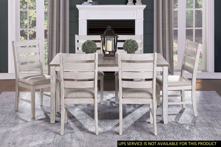 Home > Grayish White and Brown Finish Casual Dining Room Furniture 7pc Dining Set Rectangular Wooden Table and 6x Side Chairs Fabric Upholstered Seat