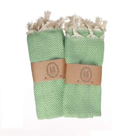 Zigzag Turkish Cotton Kitchen / Hand Towel 2 pack 40x18 in (Color: Olive)
