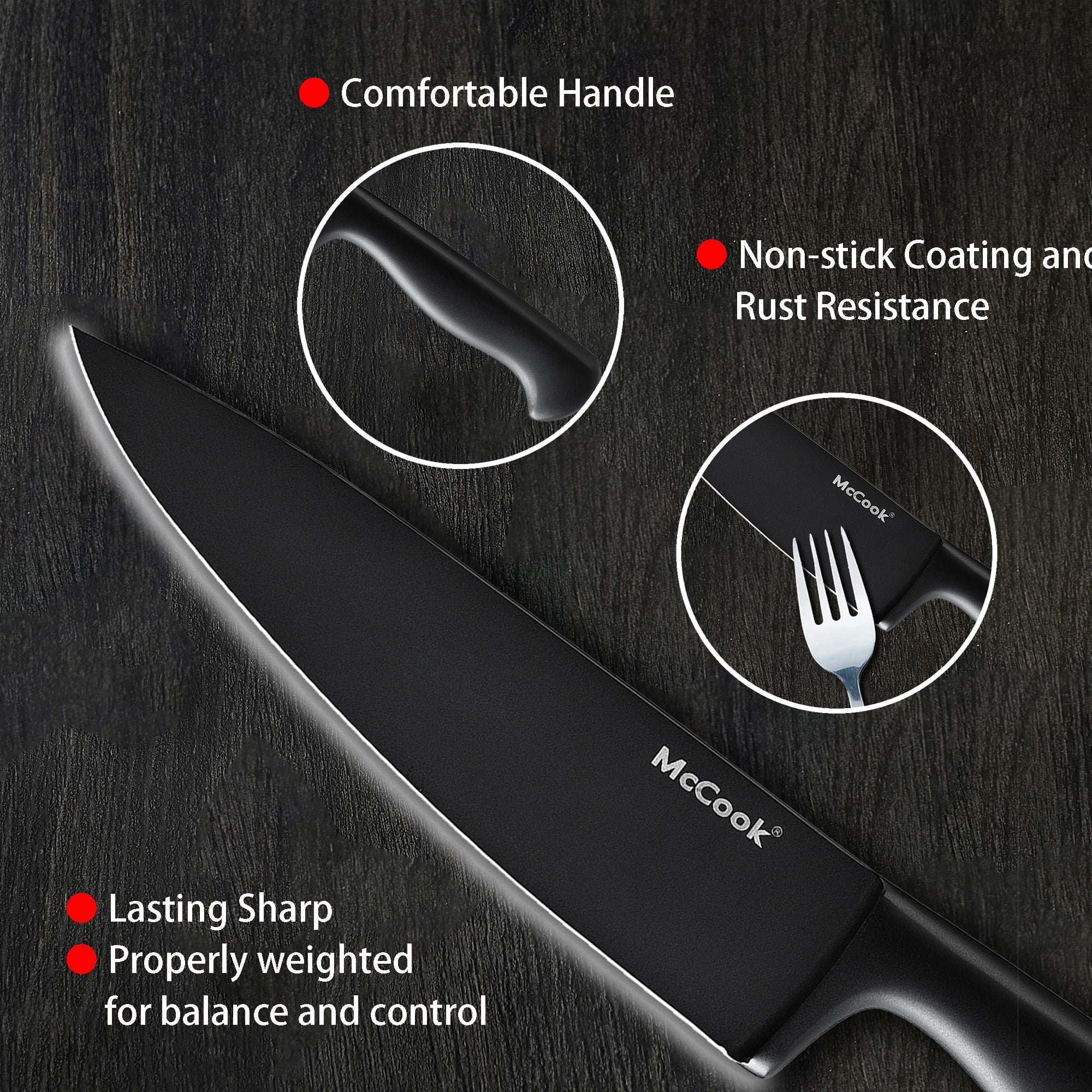 McCook MC21B Black Kitchen Knife Set with Built-in Sharpener