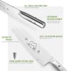 This knife set is made of high-carbon German stainless steel X50CR15MOV, with a Rockwell hardness of up to 56�2 after heat treatment, giving the knives excellent sharpness. The blades are hand-sharpened to ensure stable cutting performance and long-lasting durability. The handle is simple and elegant, ergonomic and comfortable to hold. The blade and handle are forged into one-piece with a seamless design, making the knives more durable and easier to clean. MEOWKIT knives features thoughtful round-tip blades to ensure safe use and avoid accidental injuries. They are dishwasher safe due to the high-quality materials used. The blades are engraved with cute cat patterns, making this knife set cute and charming. Don't worry about anything, the pattern will never fall off. Just enjoy the fun of cooking with this beautiful and practical knife set!