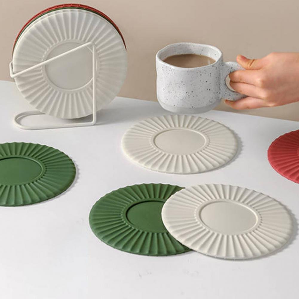 The mat effectively increases surface friction, preventing items from slipping. It is ideal for use as a cup holder, spoon rest, or in any area where extra grip or heat resistance is needed.