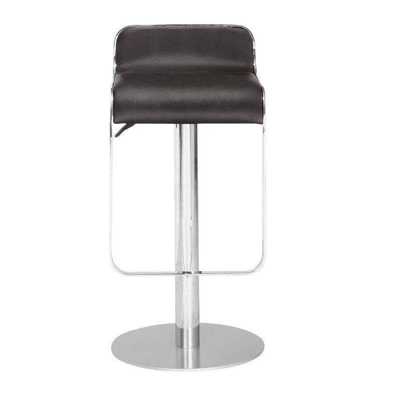 This modern barstool looks great next to a contemporary kitchen island or pulled up to a pub table. Always a stylish spot for guests to sit in your entertaining space. Crafted from heavy duty steel, its frame offers a contemporary appearance with a pedestal design finished in polished chrome. Its low-back seat style is wrapped in comfortable faux leather brown espresso color upholstery. Plus, this stool is adjustable in height from 26.5" to 30.5" to fit your counter of choice.