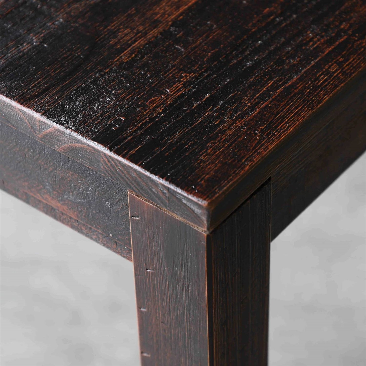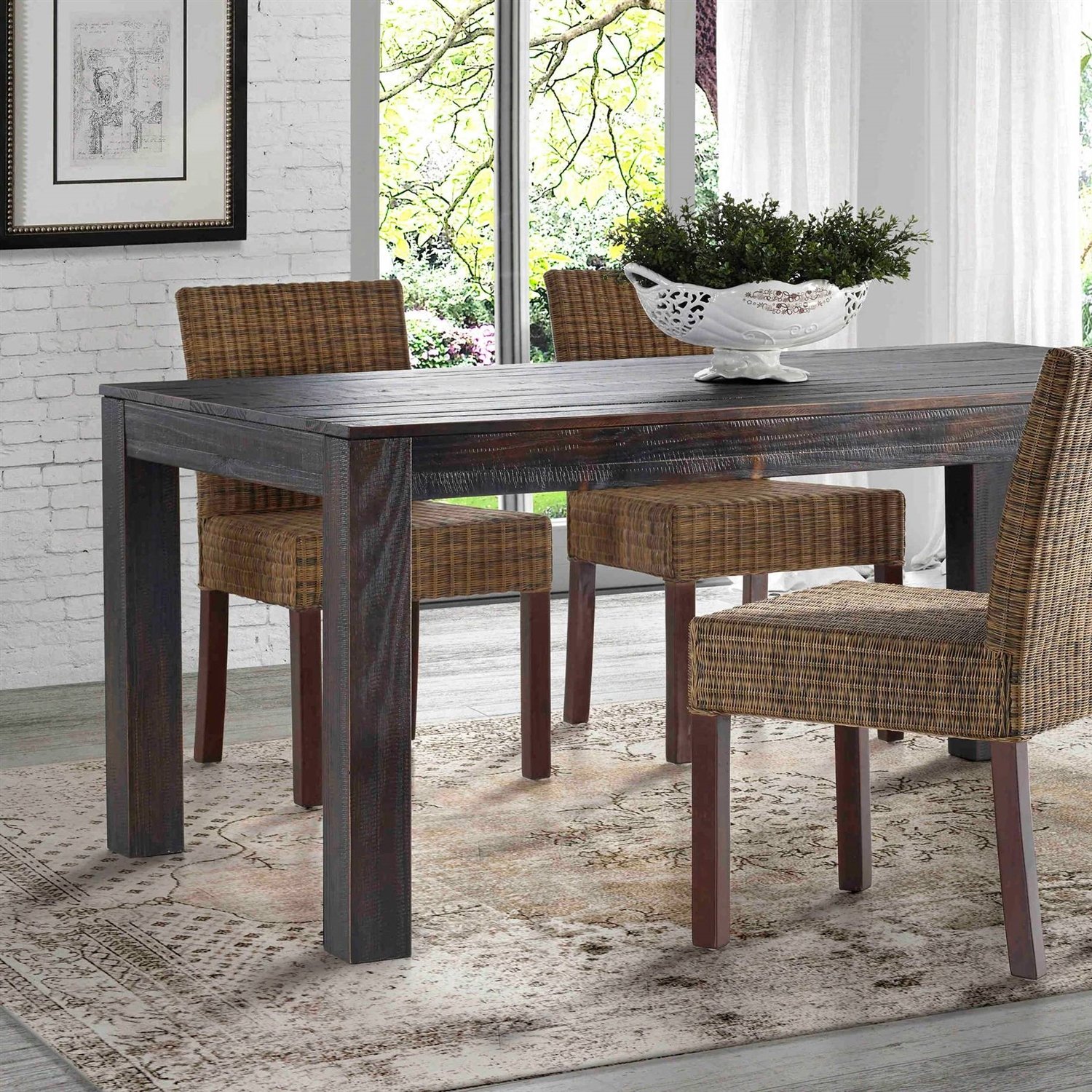 • Modern Farmhouse 63-inch Solid Wood Dining Table in Rustic Dark Brown Finish