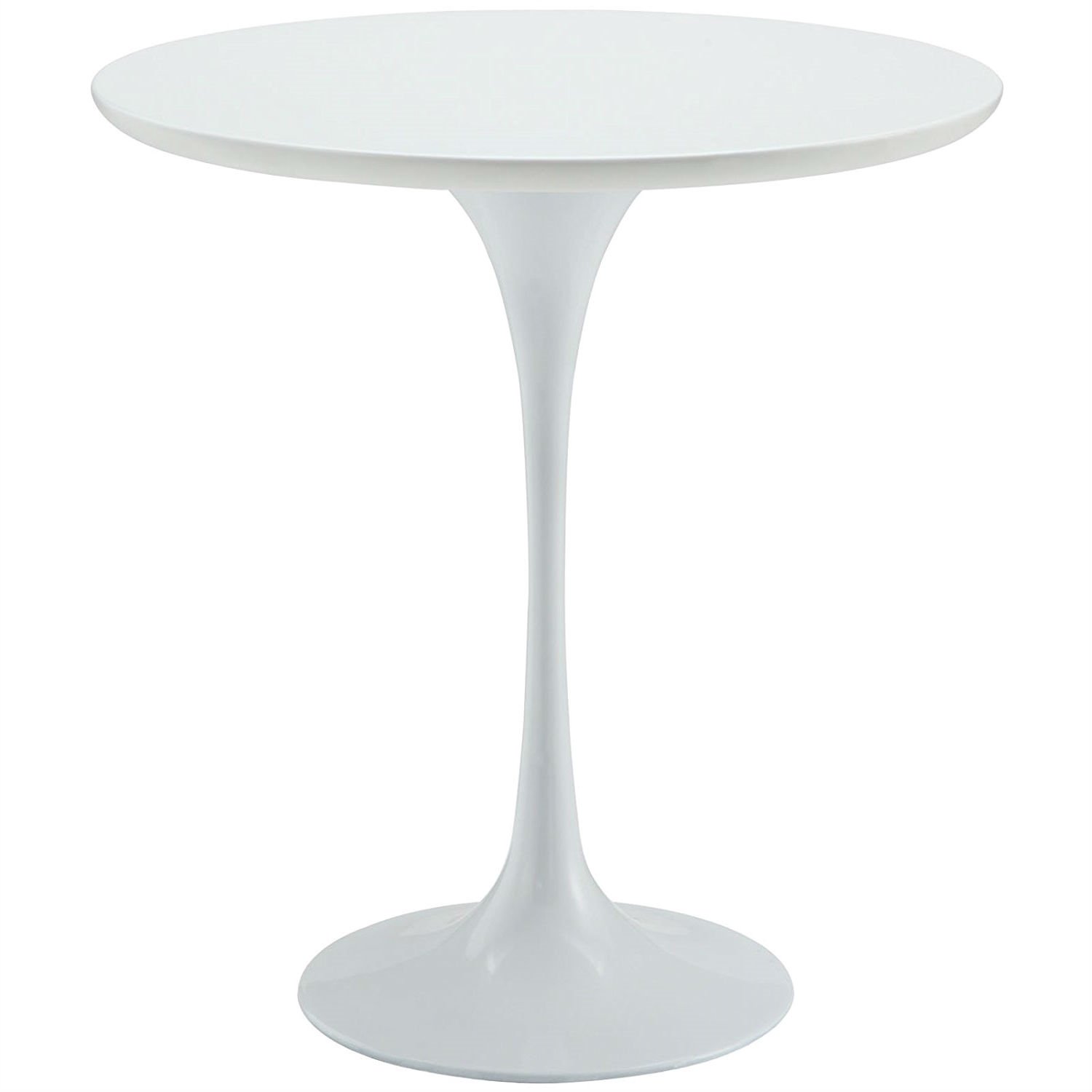 Reflecting a seamless organic shape and timeless form, this Mid Century Modern Classic 20-inch Round Side Dining Table in White has become a symbol of modernism for over the past 60 years. Before its release, homes were filled with clunky remnants of an industrial age long gone by. But in order to advance into the new world, homes first had to transition from the traditional square table, into a piece that connoted progress. The cast aluminum base and dimensions are true to the original specifications, while the table’s circular top, and tapered base, are carefully lacquered with a chip resistant finish.