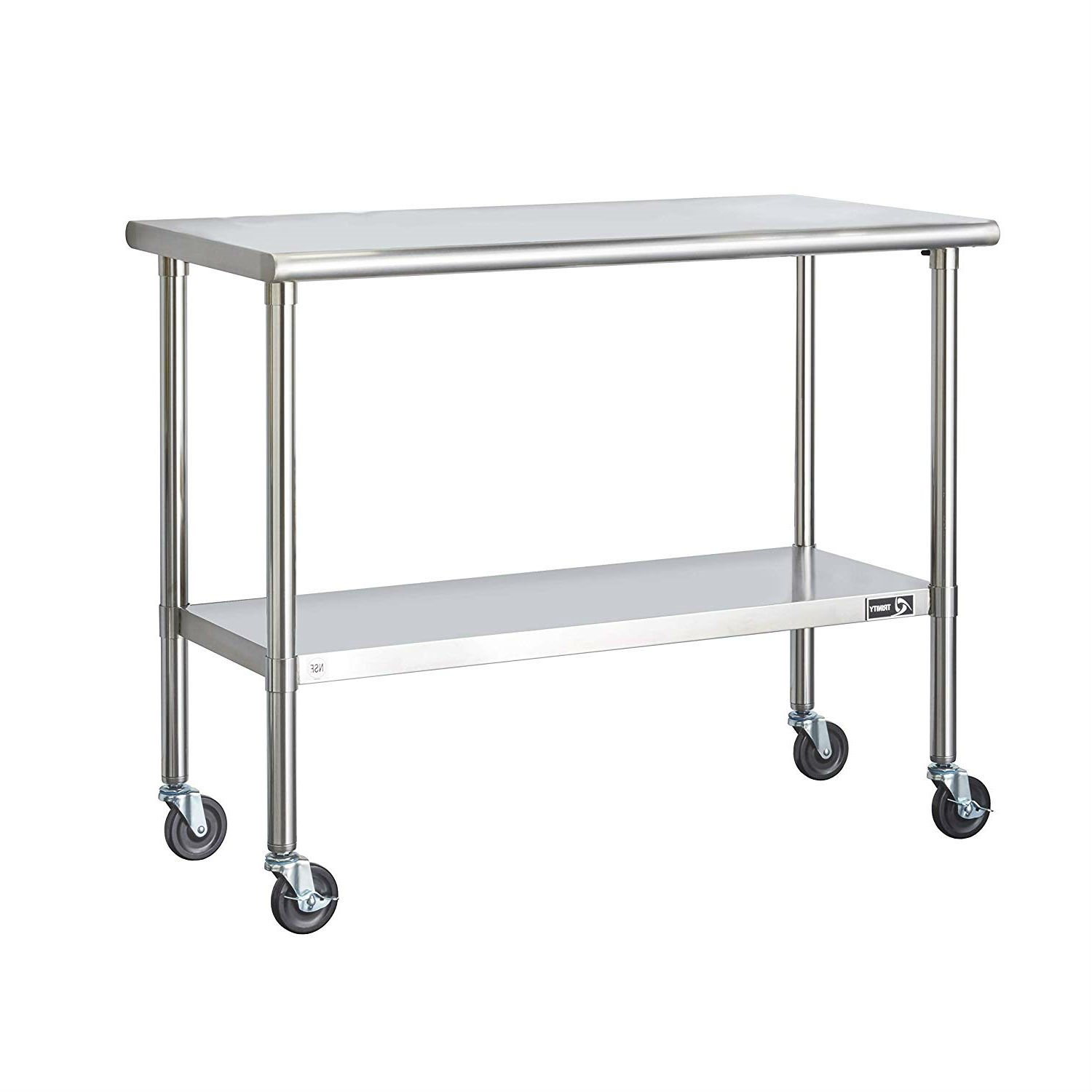 Made to just roll with it, this Stainless Steel 2-ft Kitchen Island Cart Prep Table with Casters is an on-the-go kitchen essential. This portable table is made of durable stainless steel to withstand the wear of food prep and last for years. The handy bottom shelf is fully adjustable to meet your needs for storing ingredients, dishes and utensils, equipment, and more, as you make an everyday meal or whip together a party spread. Most convenient of all, the included wheels ensure you can keep this prep table close at hand when you need it and easily move it out of the way when you're done.