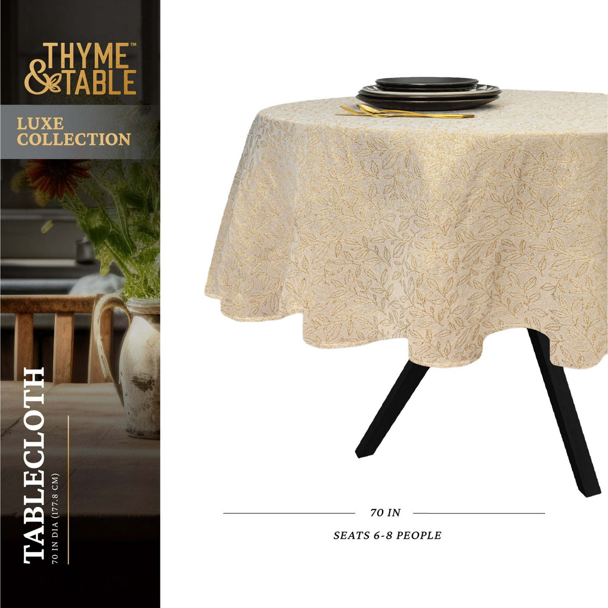 Thyme & Table 70" Round Tablecloth, Gold Leaf Thyme & Table 70" Round Tablecloth, Gold Leaf Thyme & Table 70" Round Tablecloth, Gold Leaf