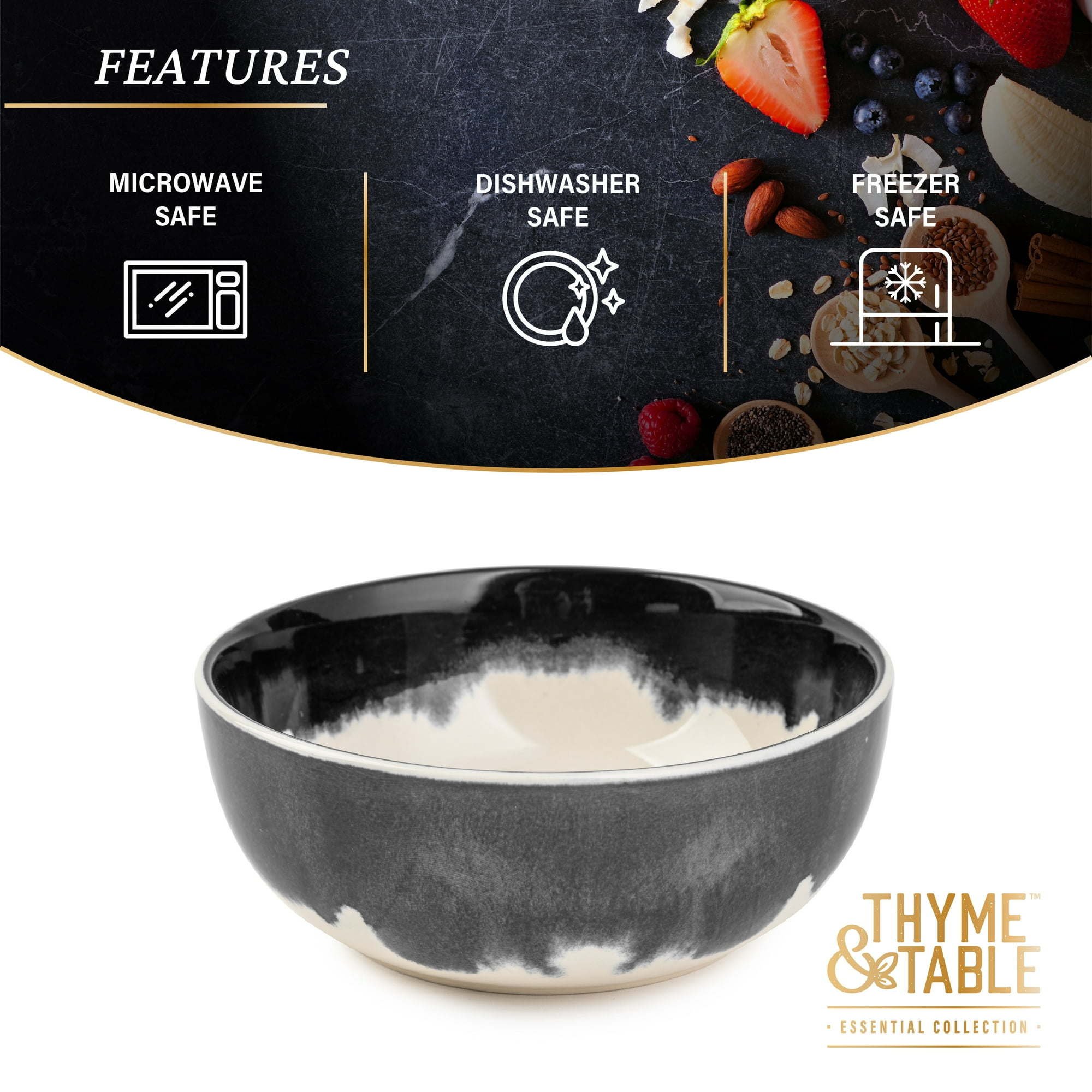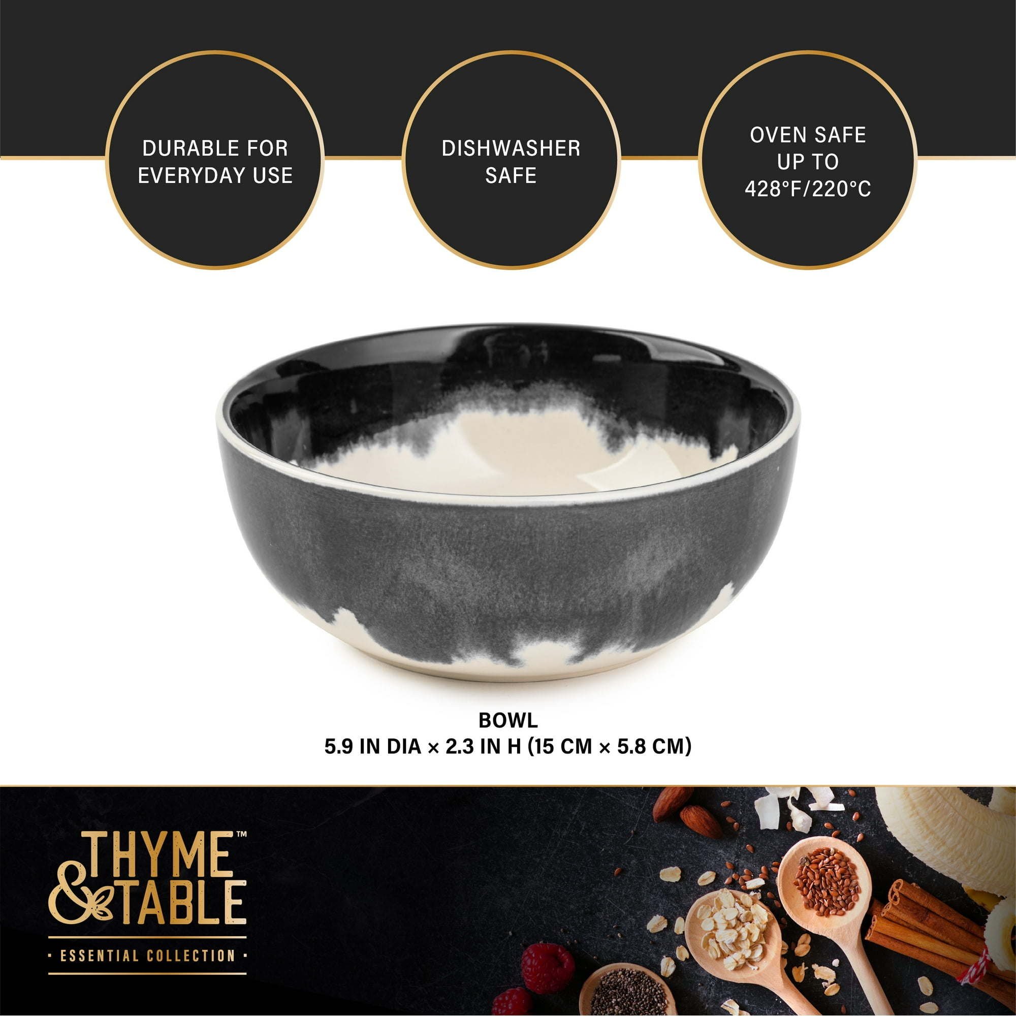 Thyme & Table Grey Drip Stoneware Round Cereal Bowl is a part of the Thyme & Table Drip Collection. The cereal bowl is microwave, dishwasher, and freezer safe. Oven safe up to 428 degrees. Promises to deliver utility and elegance