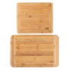 Dual cutting boards crafted from eco-friendly bamboo make for a durable and resistant cutting surface. Set includes one small and one large bamboo cutting board