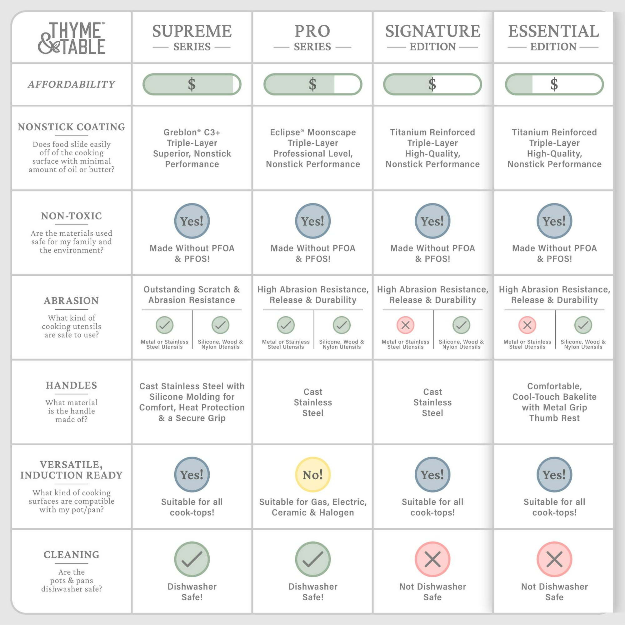 Durability: The Thyme & Table Nonstick 12.5-Inch Fry Pan is a versatile and essential frying pan that is built to last with premium aluminum and stainless steel, ensuring durability and reliability.
