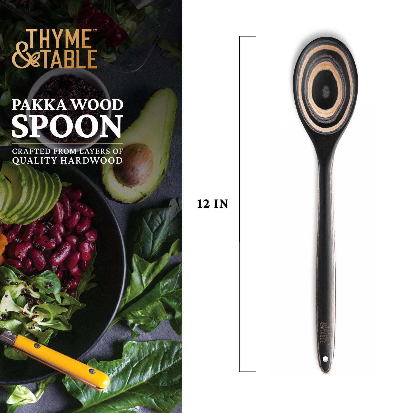 Introducing the Thyme & Table Pakka Wood Spoon, a stylish and unique addition to your kitchen utensils. Crafted with care, this spoon is made of layers of quality hardwood, ensuring durability and longevity. Each spoon boasts a one-of-a-kind pattern, making it a truly special piece in your kitchen collection. Whether you're stirring sauces, serving soups, or mixing batters, this Pakka Wood Spoon offers reliable performance and adds a touch of elegance to your culinary endeavors. Elevate your cooking experience with the Thyme & Table Pakka Wood Spoon and enjoy the beauty and functionality of this handcrafted utensil.