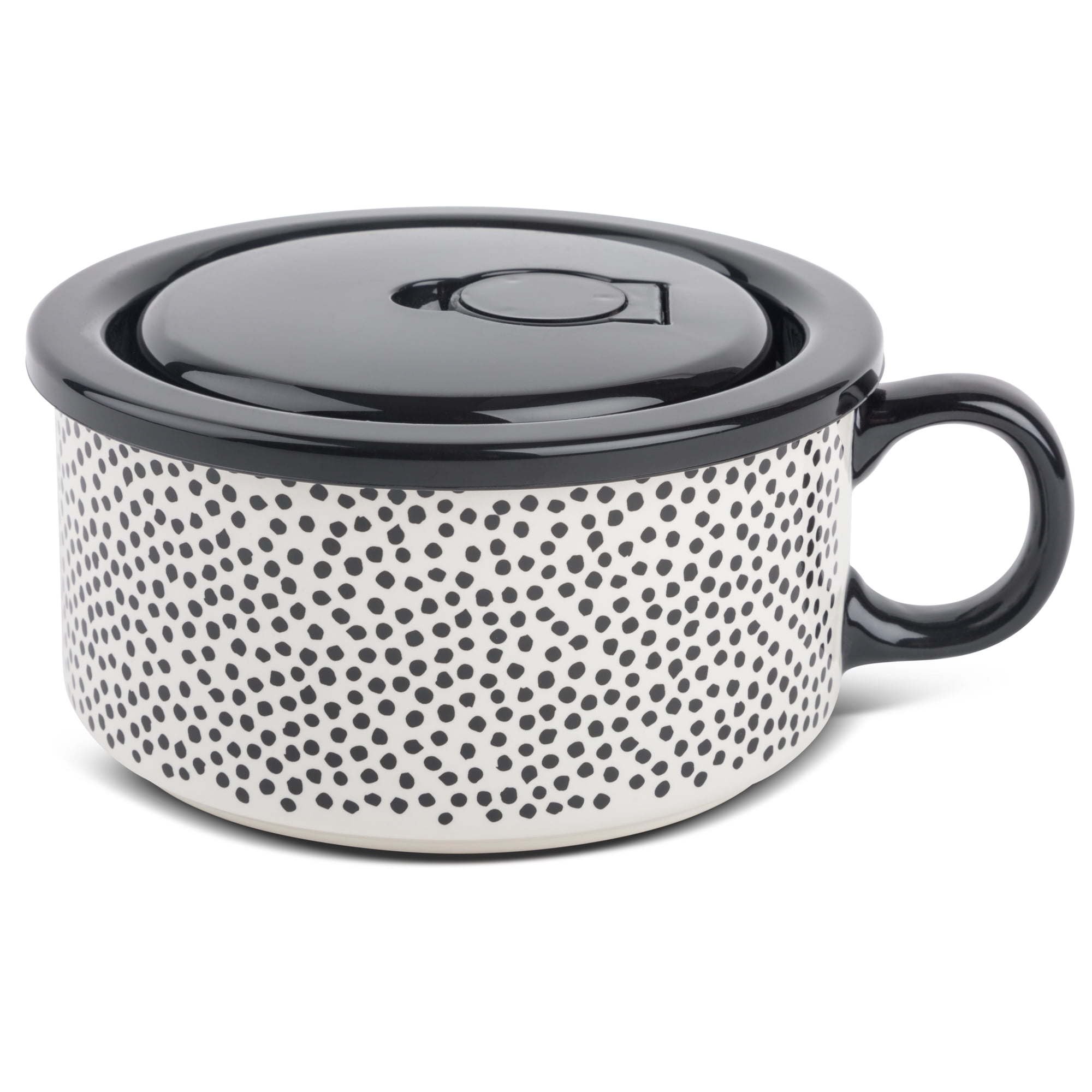 Thyme & Table Stoneware Soup Mug, Dot is the perfect companion for enjoying your favorite soups, stews, or even hot beverages. It features a sturdy handle that allows for a secure grip while sipping or carrying your mug. Crafted from high-quality materials, our Soup Mug is built to last. It is made to withstand the demands of daily use and offers excellent heat retention, ensuring your soup stays warm from the first to the last spoonful. The included splash proof lid is perfect for home or office use. Dishwasher safe and easy to clean. Microwave safe without lid. For product's longevity, please hand wash.