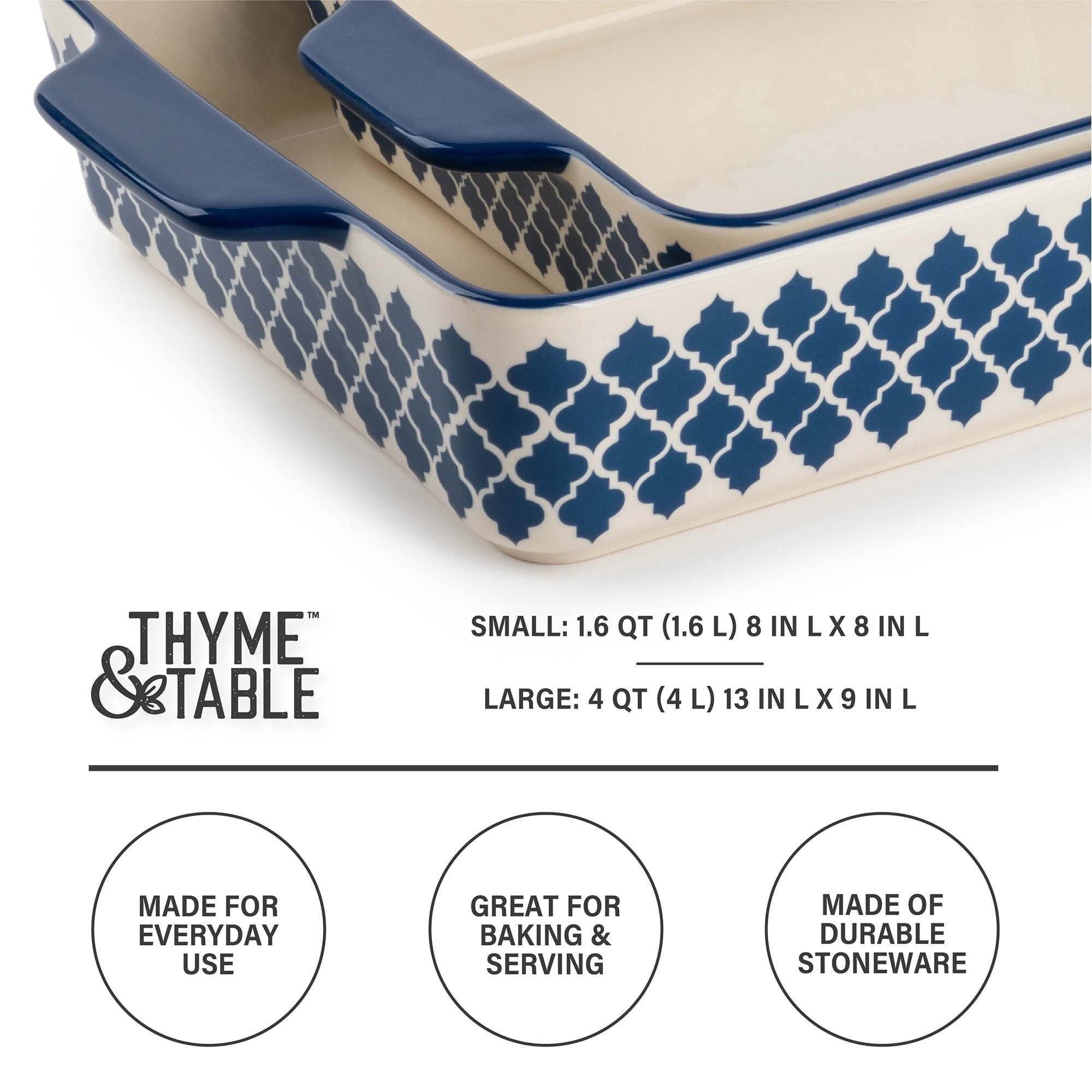 Home > Thyme & Table Stoneware Square & Rectangular Baker, Blue Pattern, 2-Piece Set